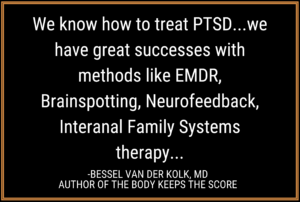 With careful support by the therapist and precise use of eye position, we access memories around the traumatic event. We bring those stored memories onboard, giving the limbic system the chance to receive new information about that traumatic event in the here-and-now.